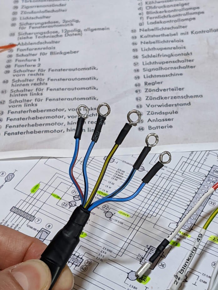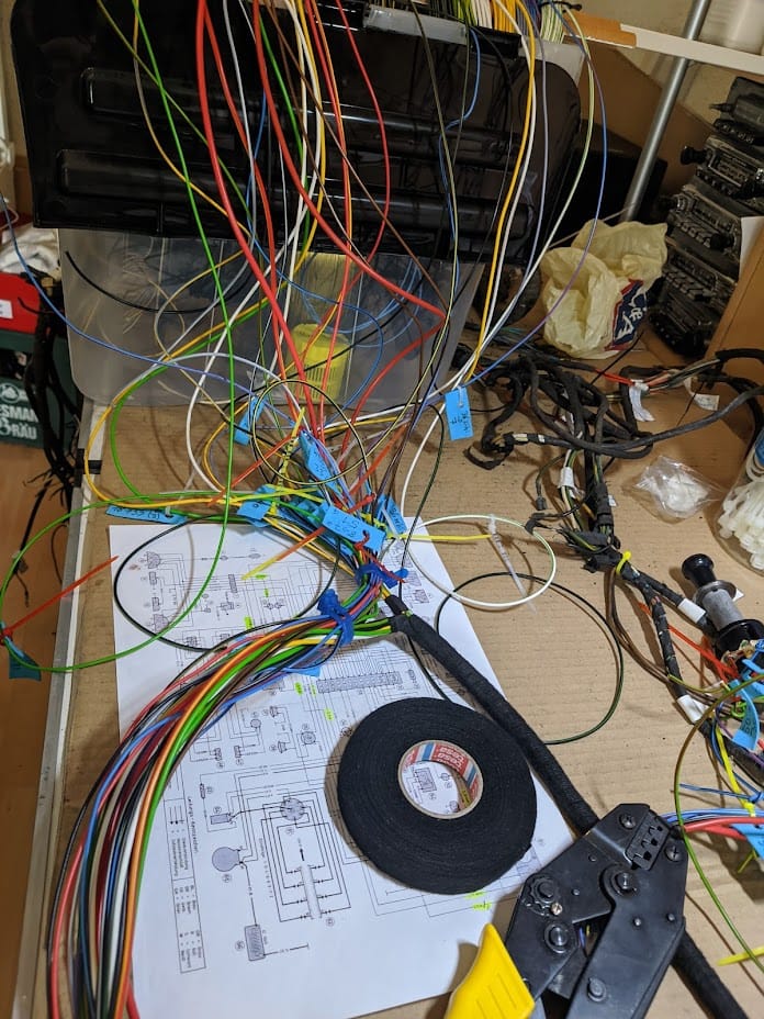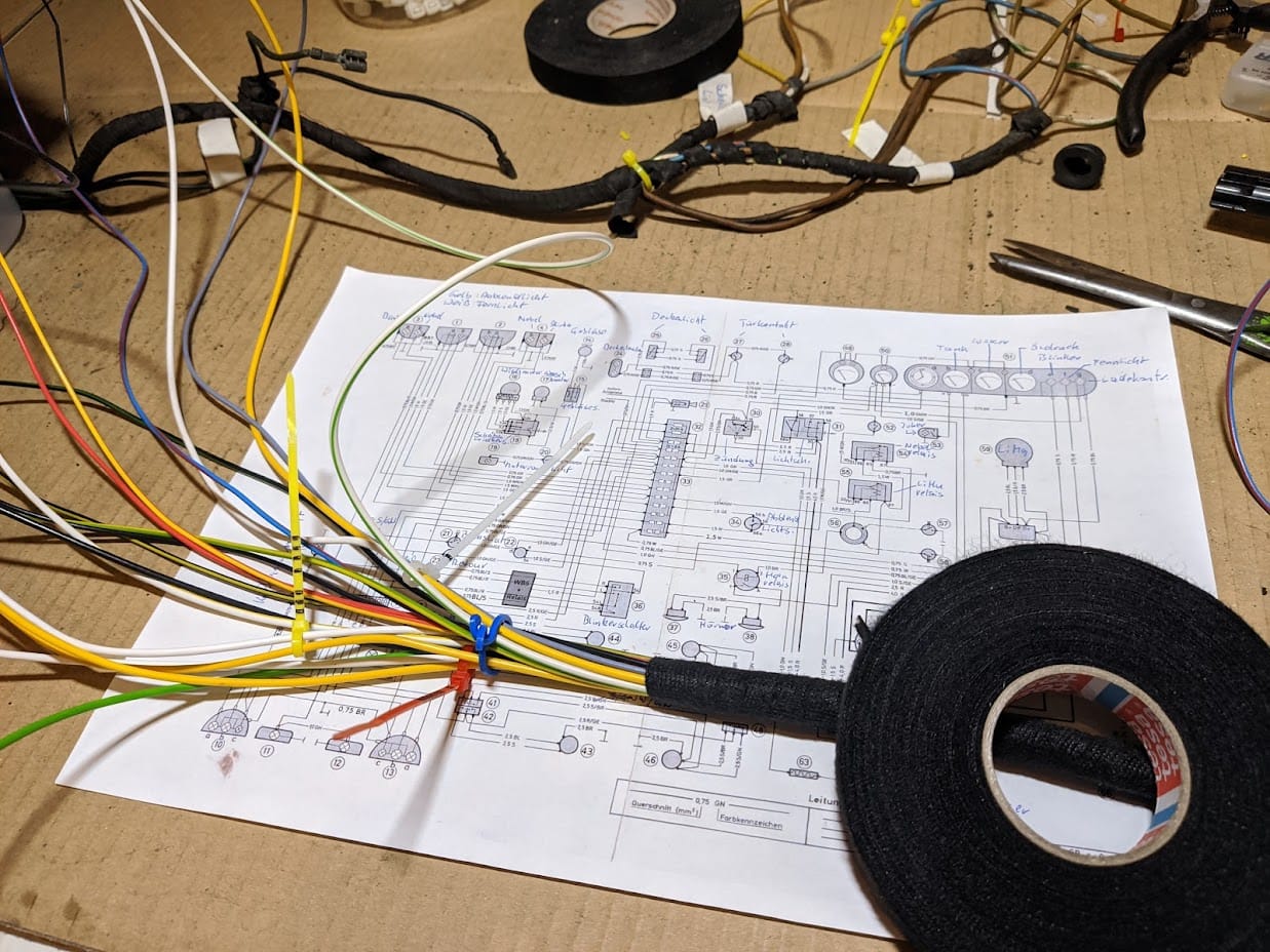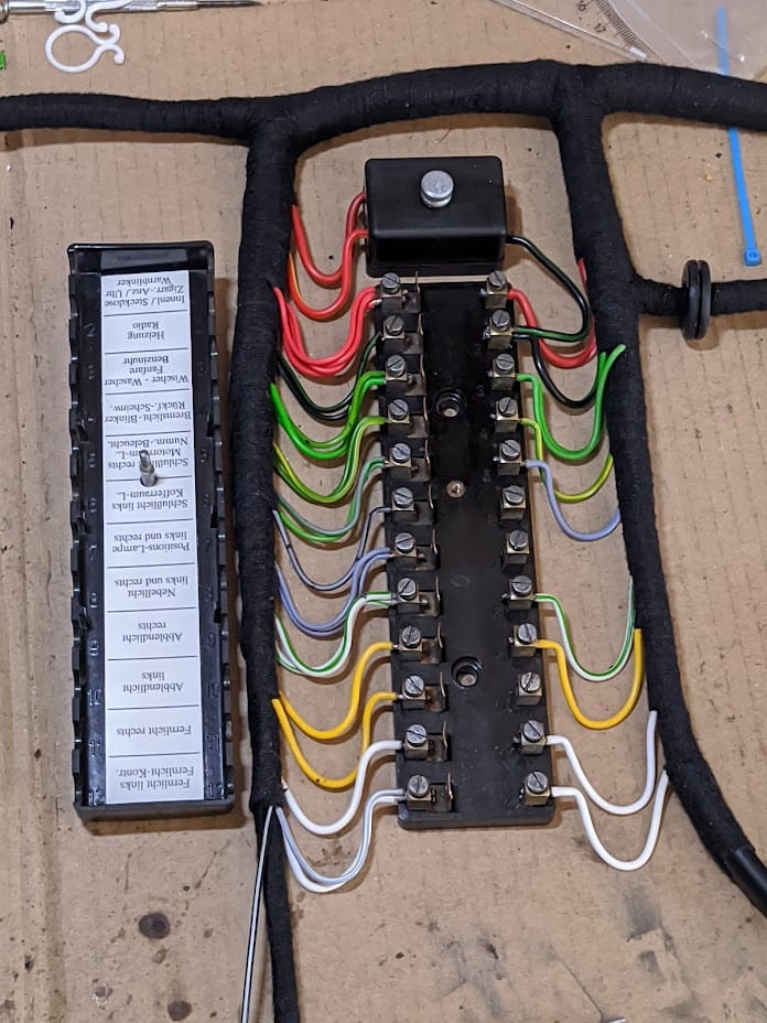 Der Kabelbaum wurde mit Hilfe des originalen als Muster komplett neu aufgebaut. In diesem Zuge wurde auch der Warnblinker gleich integriert.