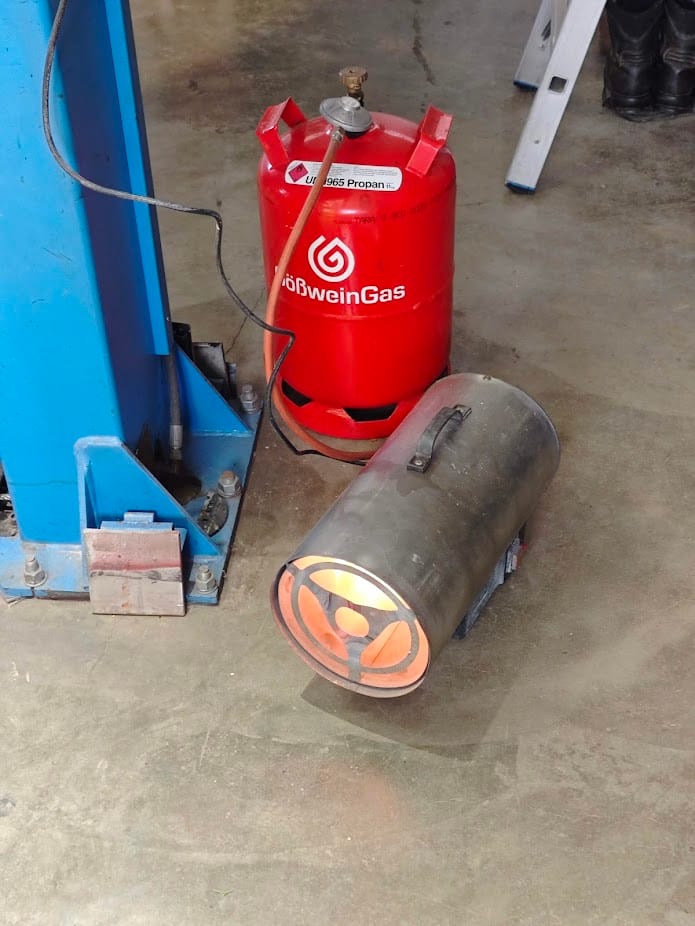 Die schon kühle Werkstatt wurde durch einen kleinen "Feuerteufel" auf eine gemütliche Arbeitstemperatur gebracht.