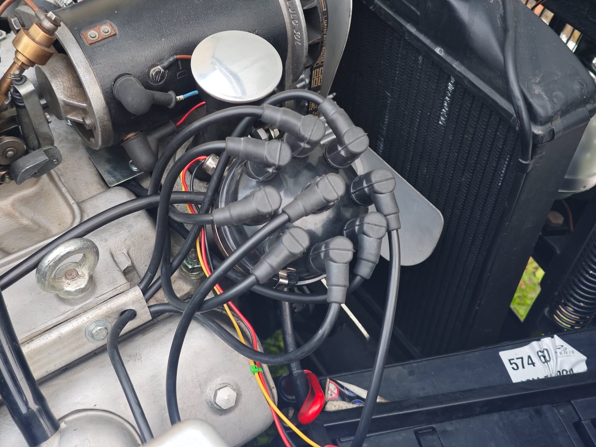 Nachdem der intensive Regen am zweiten Tag der Murtal Classic Bertis Zündung absolut nicht geschmeckt hat, musste Bertis Elektrik im Motorraum wieder wetterfest gemacht werden. Es wurden alle Zündkabel erstetzt, die Kerzenstecker bekamen Schutzkappen und alle Winkelstecker wurden durch neue, wasserdichte ersetzt.